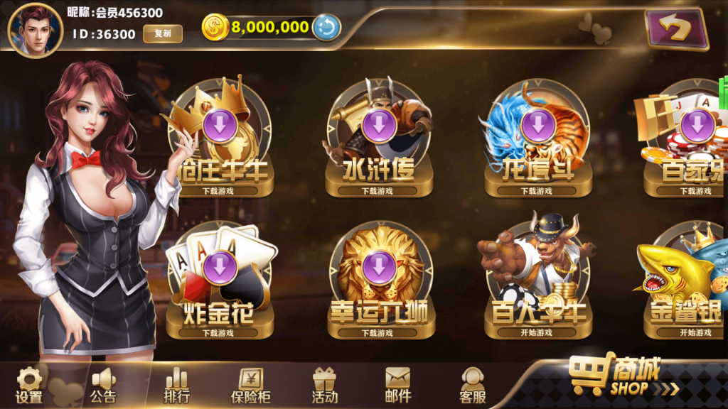 抢庄牛牛,金蝉捕鱼,大闹天宫,美人鱼,糖果派对,比大小,水浒传,金鲨银鲨,五星宏辉,百家乐,炸金花